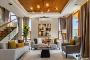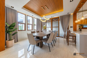 The house follows a modern contemporary design language, characterized by clean lines, minimalist detailing, and a balanced use of textures and materials. The architecture embraces simplicity while promoting a warm, livable environment through strategic spatial planning and thoughtful orientation.